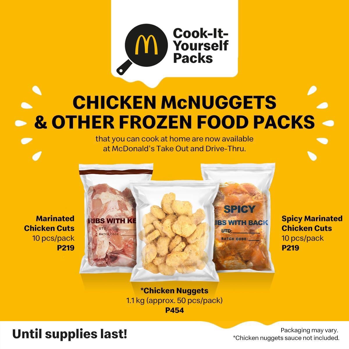 One pack contains 50 pieces of Chicken McNuggets which is sold at P454.