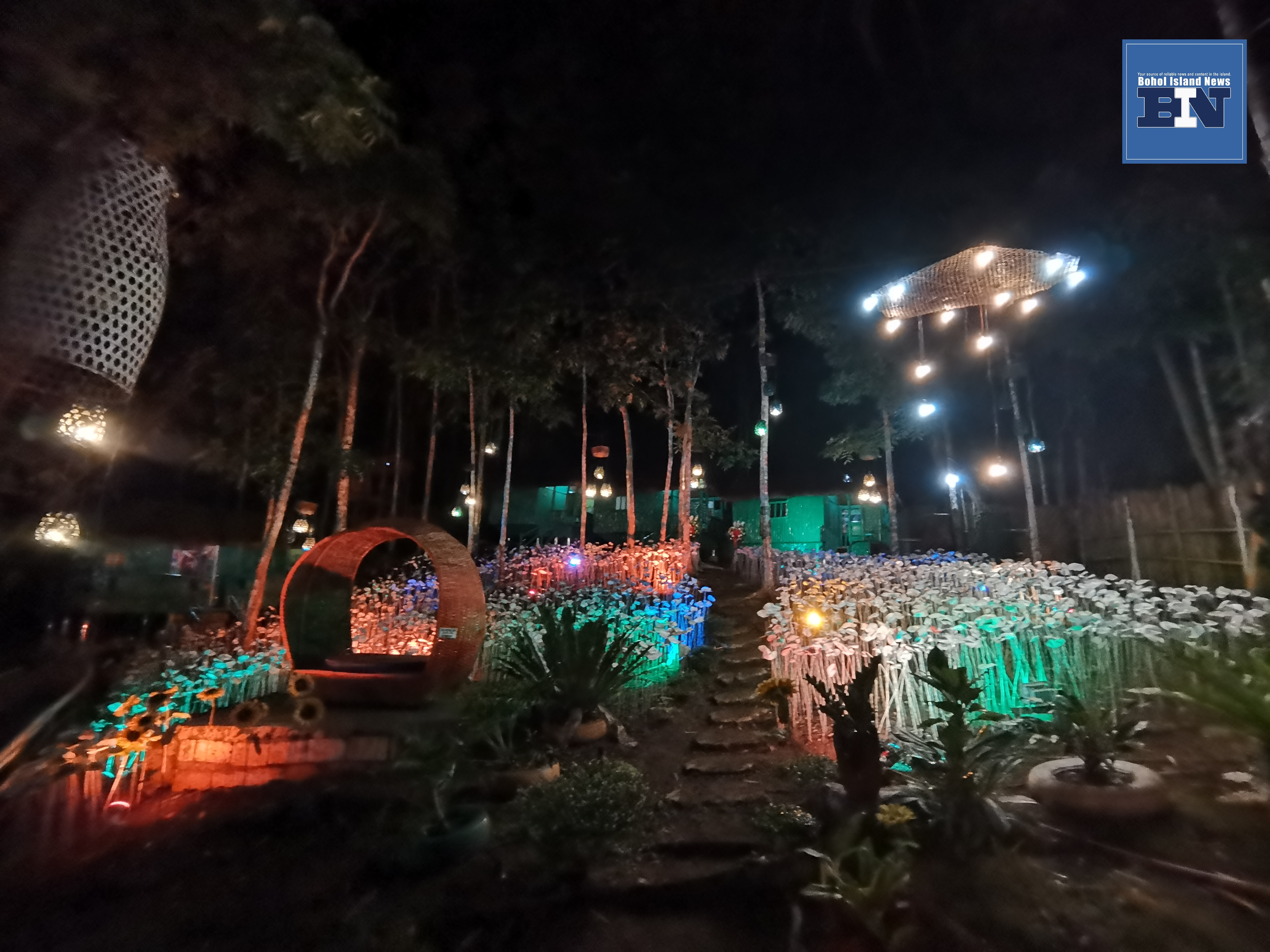 The Bamboo Place offers a garden with leatherette white, heart-shaped anthurium and plastic sunflowers in its one-hectare property. At night, lights would flood the place to color and illuminate the flowers and the area.