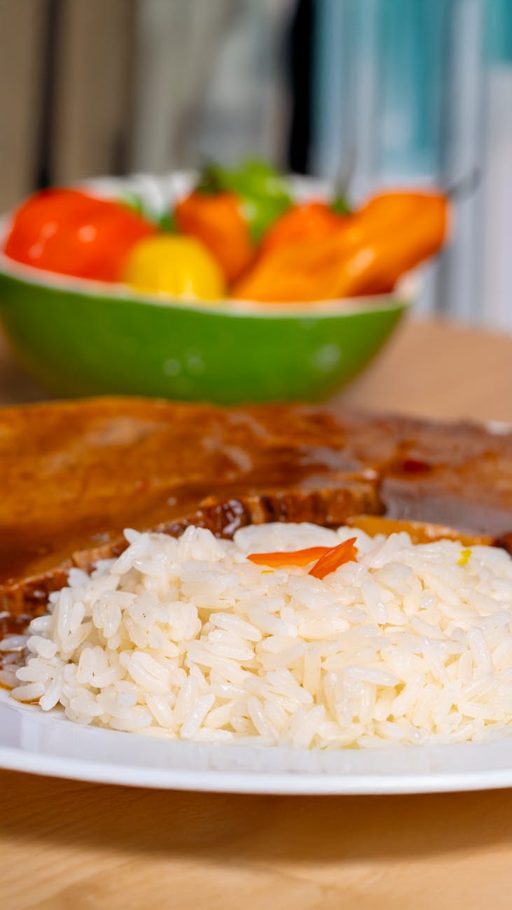 White rice which is refined by polishing, strips it of its bran and germ, reducing its nutritional value.